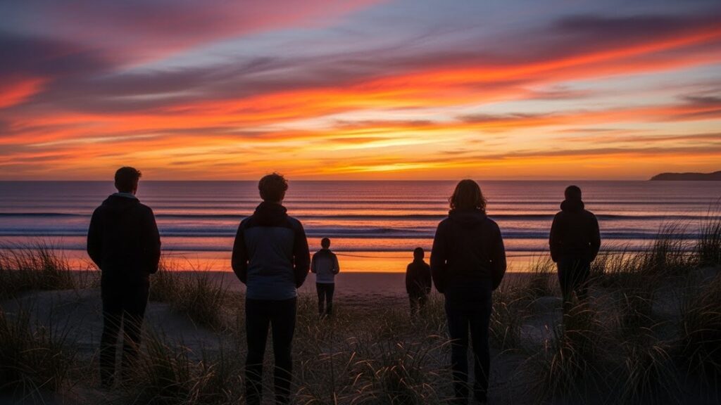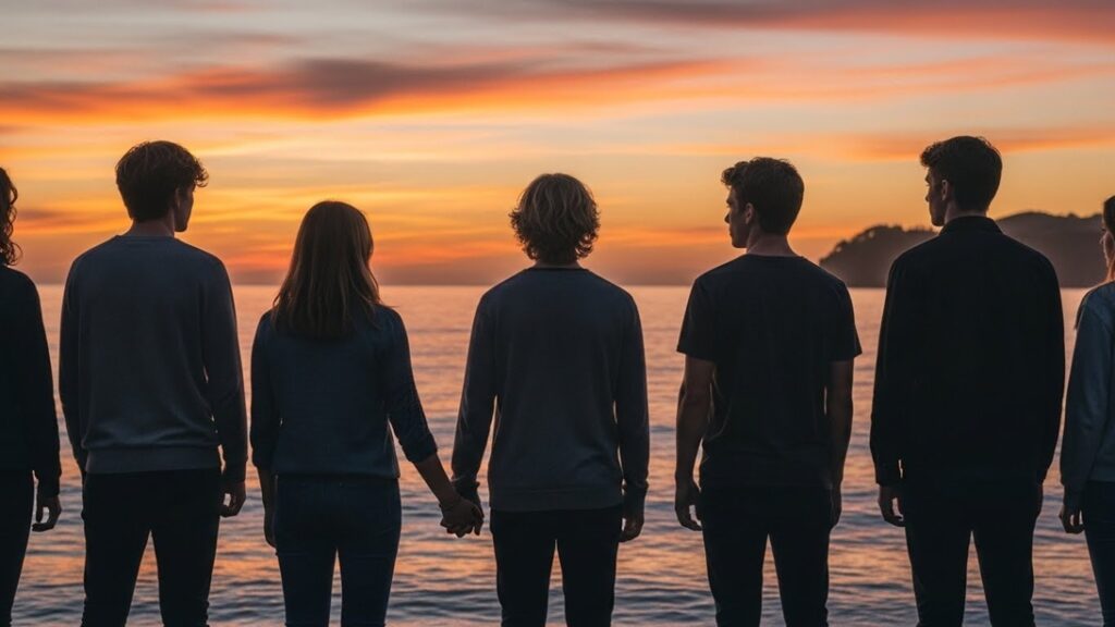 夕暮れが海に沈むころ、画面の中で彼らの旅も静かに終わった。